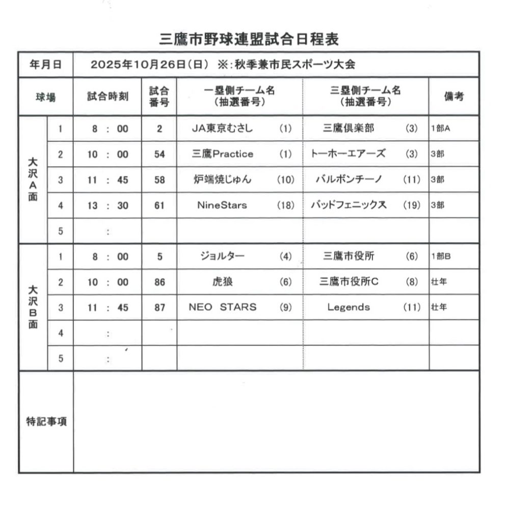このサイトは三鷹市野球連盟が運営しています